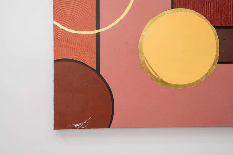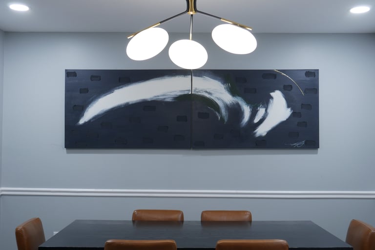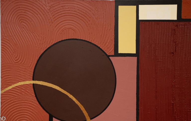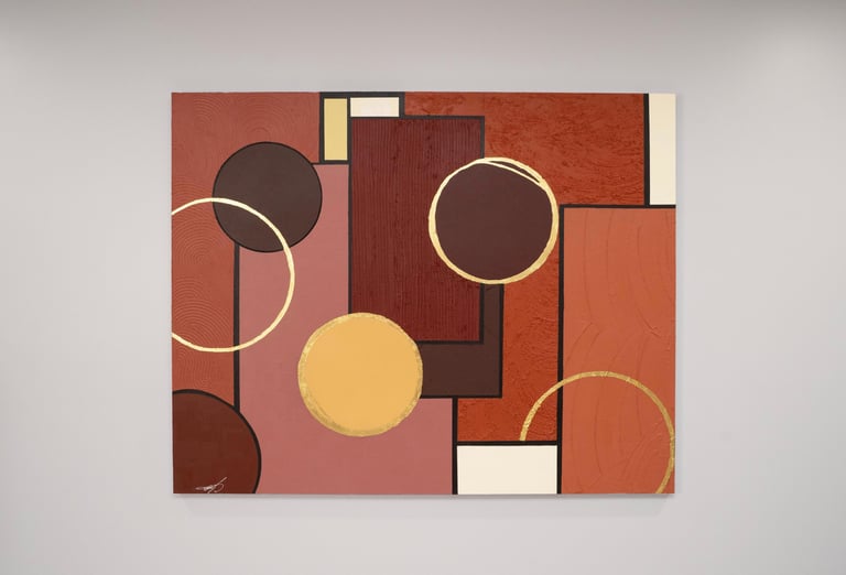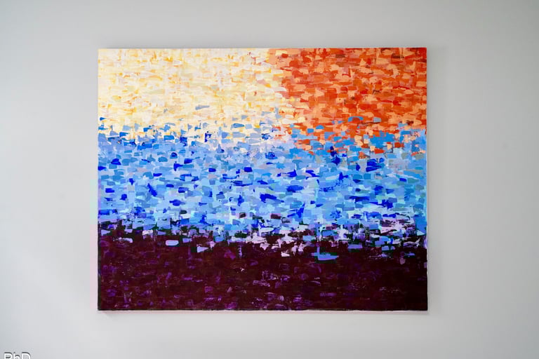 "Stonewall" is an abstract aerial view of the golf course, presented as a meditation on the process of cumulative effort. The painting's rich texture is built from countless small, individual strokes, a technique mirroring golf's essence: each stroke is a singular, decisive action that, when combined, completes the whole. This speaks to the truth that any significant goal is accomplished not by one large move, but by the relentless precision of small, persistent efforts.