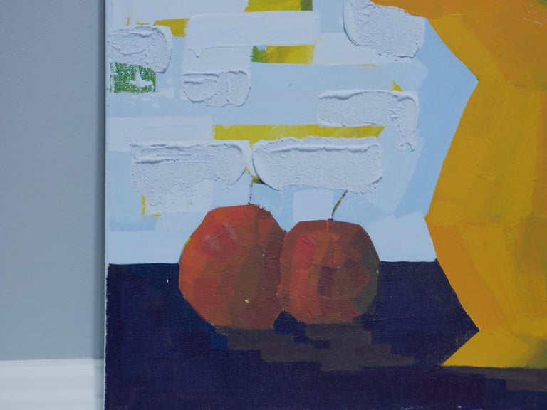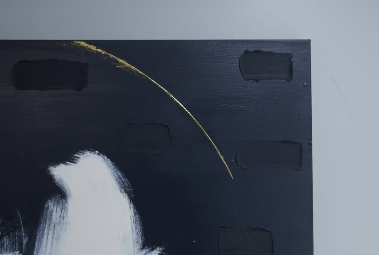 Each stroke pushes out deadlines, commitments, and expectations-pieces scattered onto the canvas.
