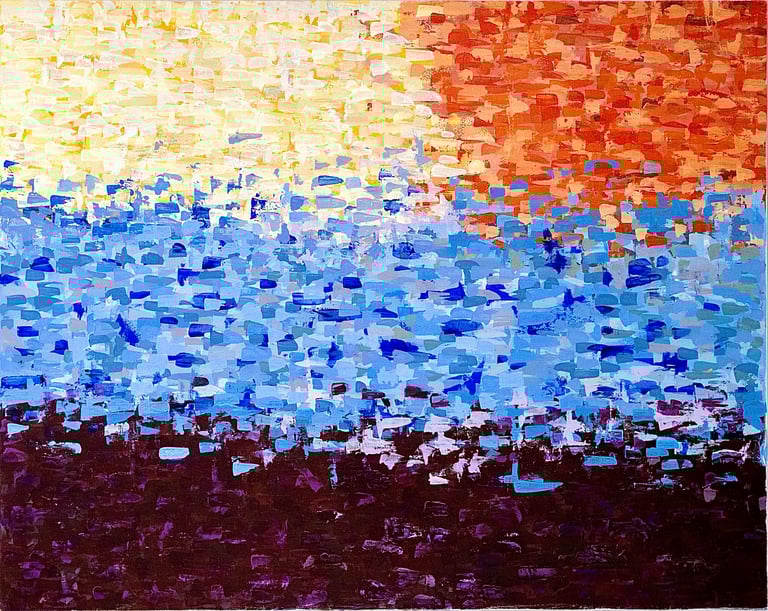 Yet, the colors converge, not in chaos, but in deliberate patterns. They form bridges across the tumult, connecting moments.